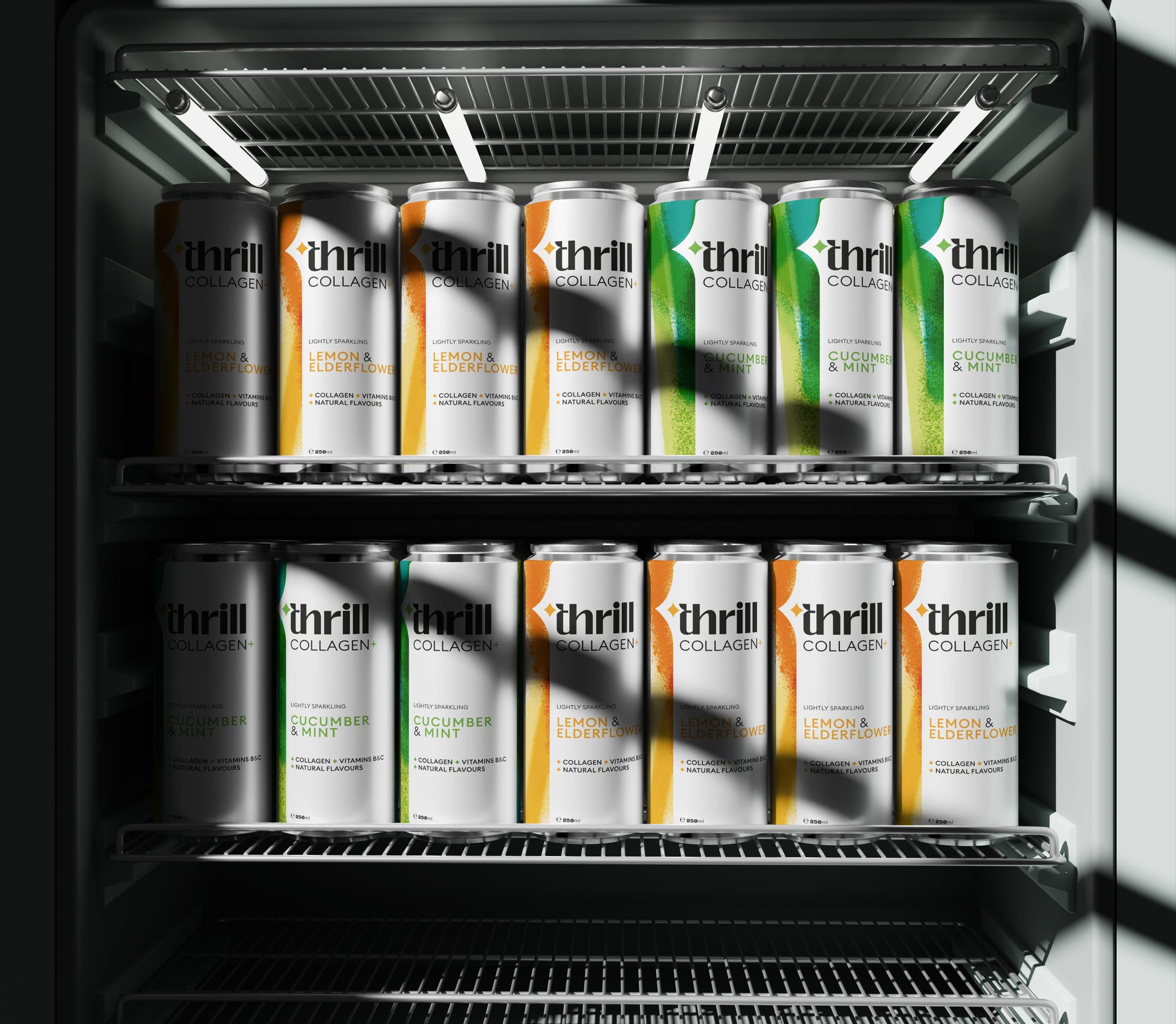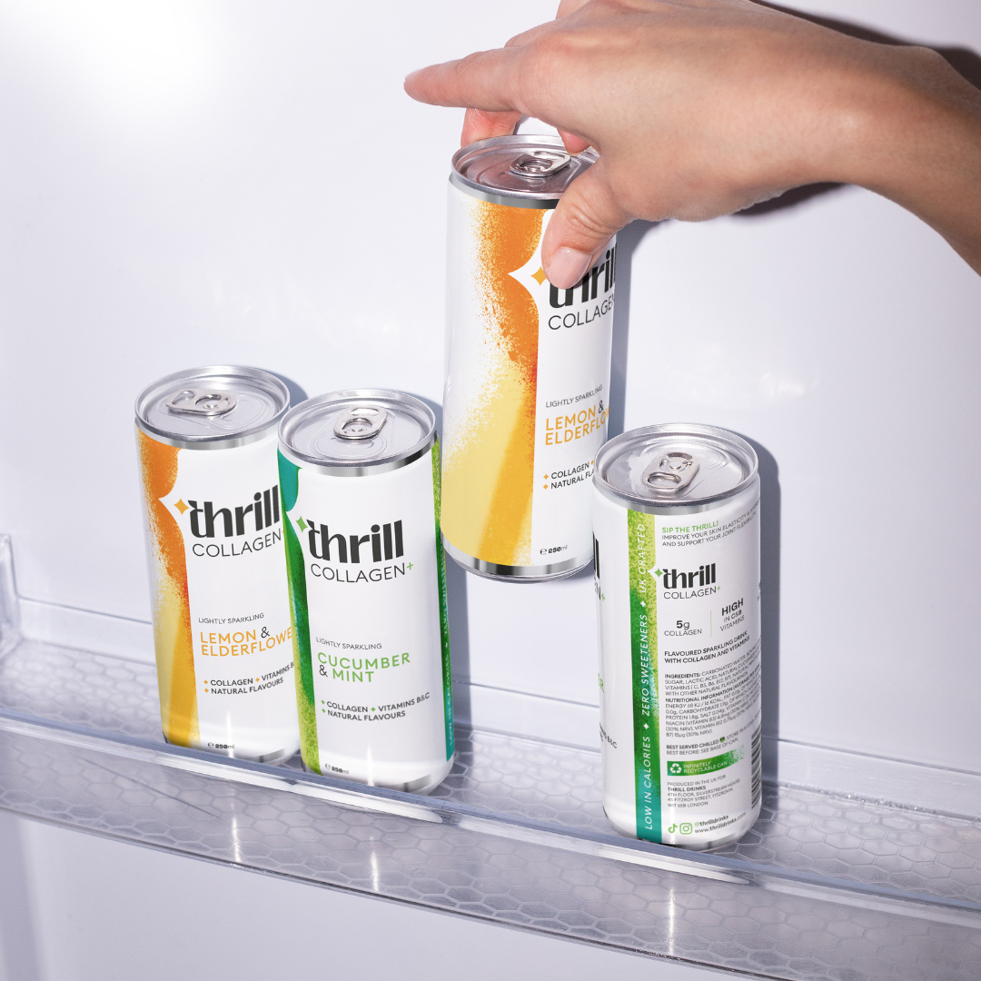 THRILL COLLAGEN+ sparkling drink with Collagen and vitamins Mixed flavours Pack with X6 Lemon Elderflower 250ml and X6 Cucumber Mint 250ml